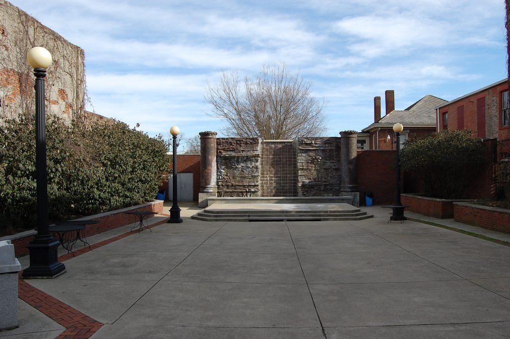 The centerpiece for the park is a 14 x 32 foot cascading fountain by local artist Zoe Strecker. Inspiration for the fountain came from the dramatic limestone gorge of the Kentucky River known as the "Palisades". There is a platform area in front of the fountain, which can be used as a stage, allowing the park to serve as the site of live entertainment.